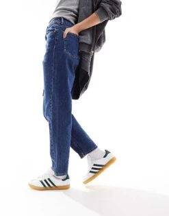 JJXX Lisbon Mom Jeans In Dark Blue Wash For Women Blue Denim