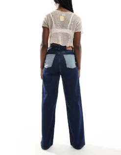 JJXX Tokyo Wide Fit Jean In Dark Blue With Contrast Pockets For Women Dark Blue Denim