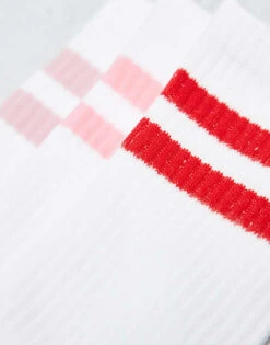 JJXX 3 Pack Sport Socks In White With Pink Red Stripes For Women Racing Red