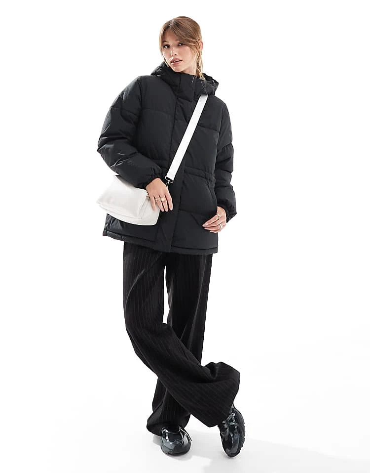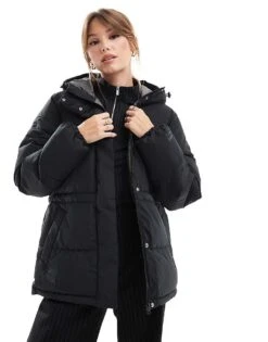 JJXX Drawstring Hooded Puffer Jacket In Black For Women